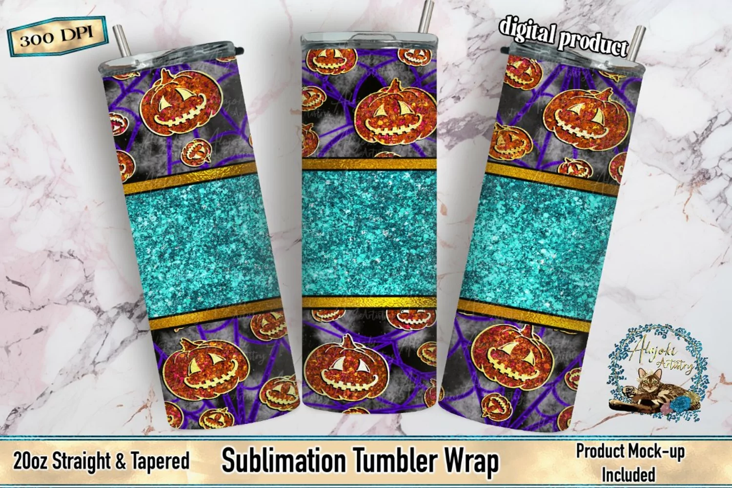 This is a peekaboo pumpkins sublimation design. Sized to fit a 20oz skinny tumbler. This sublimation tumbler wrap features a glitter band and peekaboo pumpkins