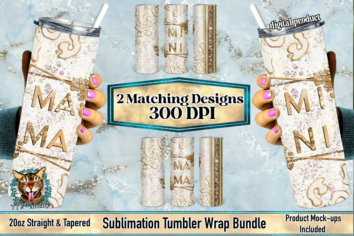 Mama And Mini Light Gold | Sublimation Tumbler Design Bundle