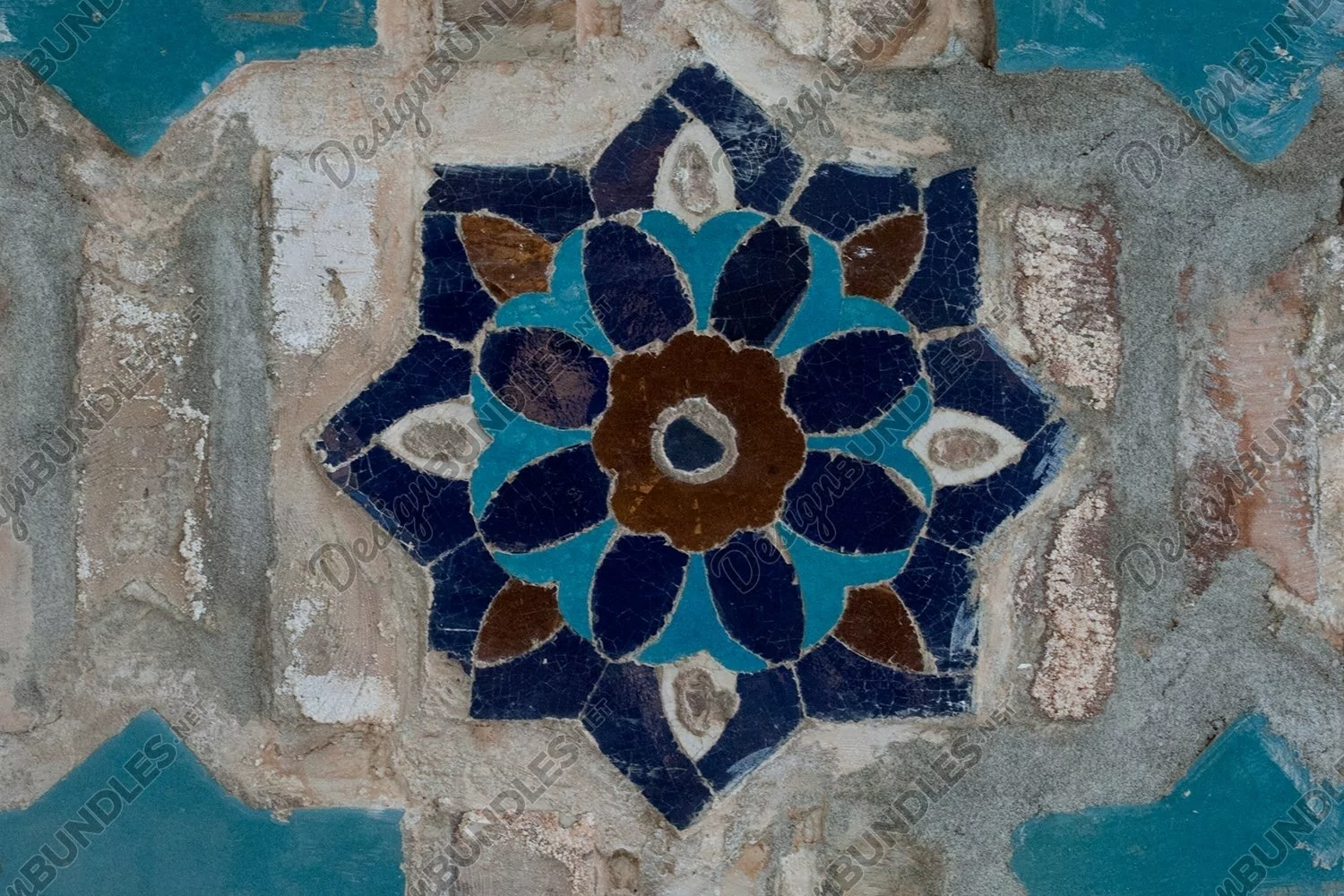 Asian old ceramic mosaic. Elements of oriental ornament on ceramic tiles