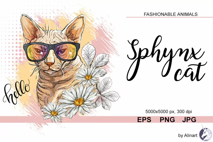 Vector Illustration Cat Portrait Sublimation Sphynx Cat Illustration Cat In Flowers Illustration Cat Head Illustration Sphynx Cat Portrait Trendy Sphynx Cat Cat Design Vector Sphynx Cat Head Png