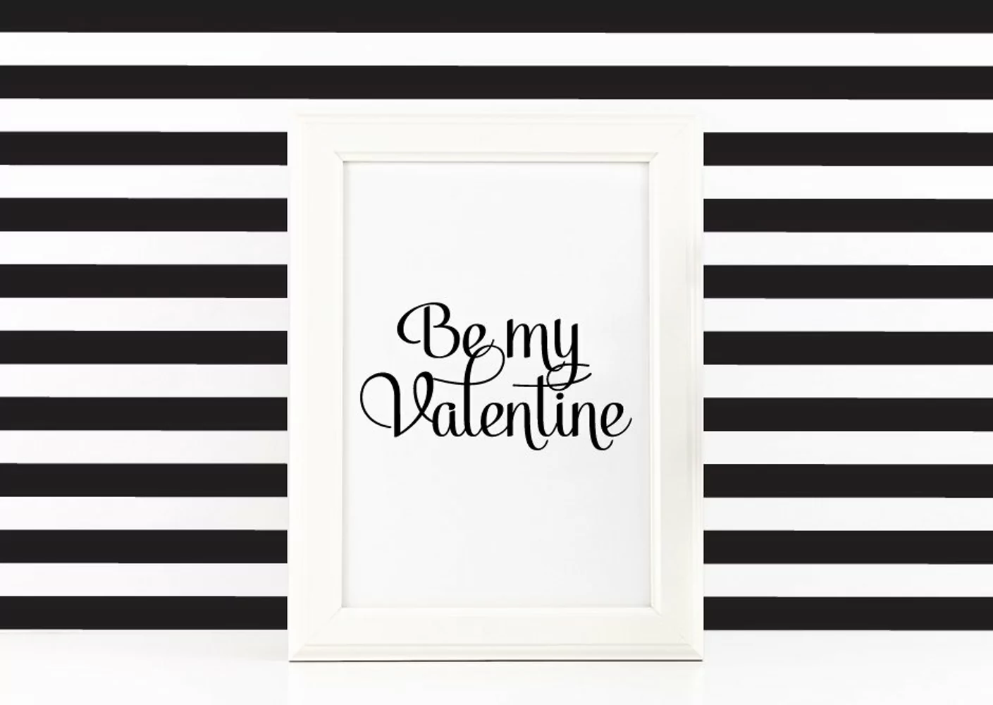 Be My Valentine Quote, printable wall art 8.5x11 poster, in cursive typography :: Digital Poster :: Black calligraphy on white background.