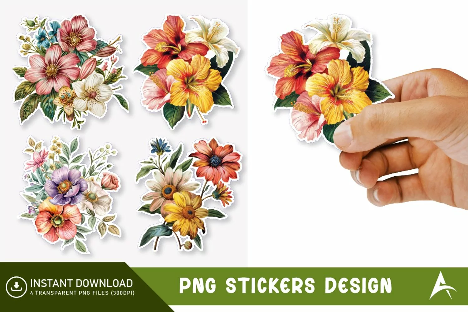 Flower Printables Printable Flower Art Botanical Stickers Digital Flower Stickers Flower Sticker Set Printable Floral Stickers Watercolor Flower Stickers Floral Sticker Designs Colorful Flower Stickers Vintage Flower Stickers