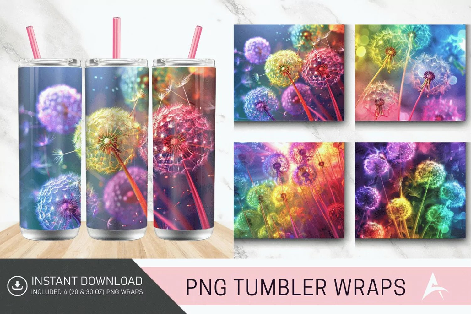3D Rainbow Dandelions Flower Tumbler Wrap example image 1