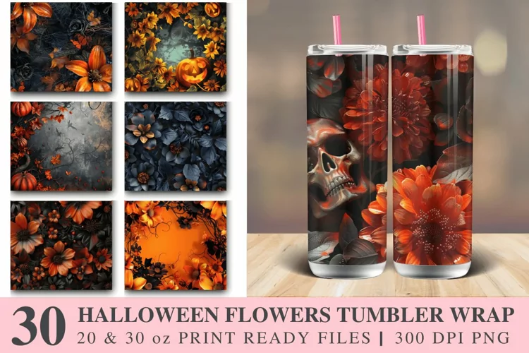 Similar Design Products to 3D Halloween Flowers Tumbler wrap Bundle