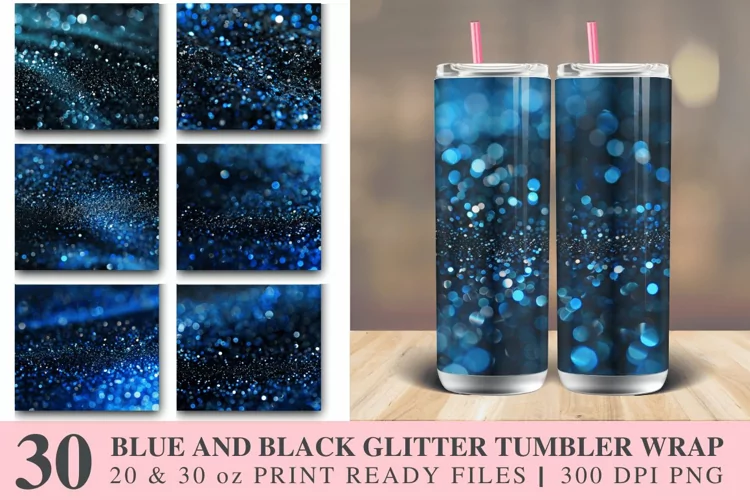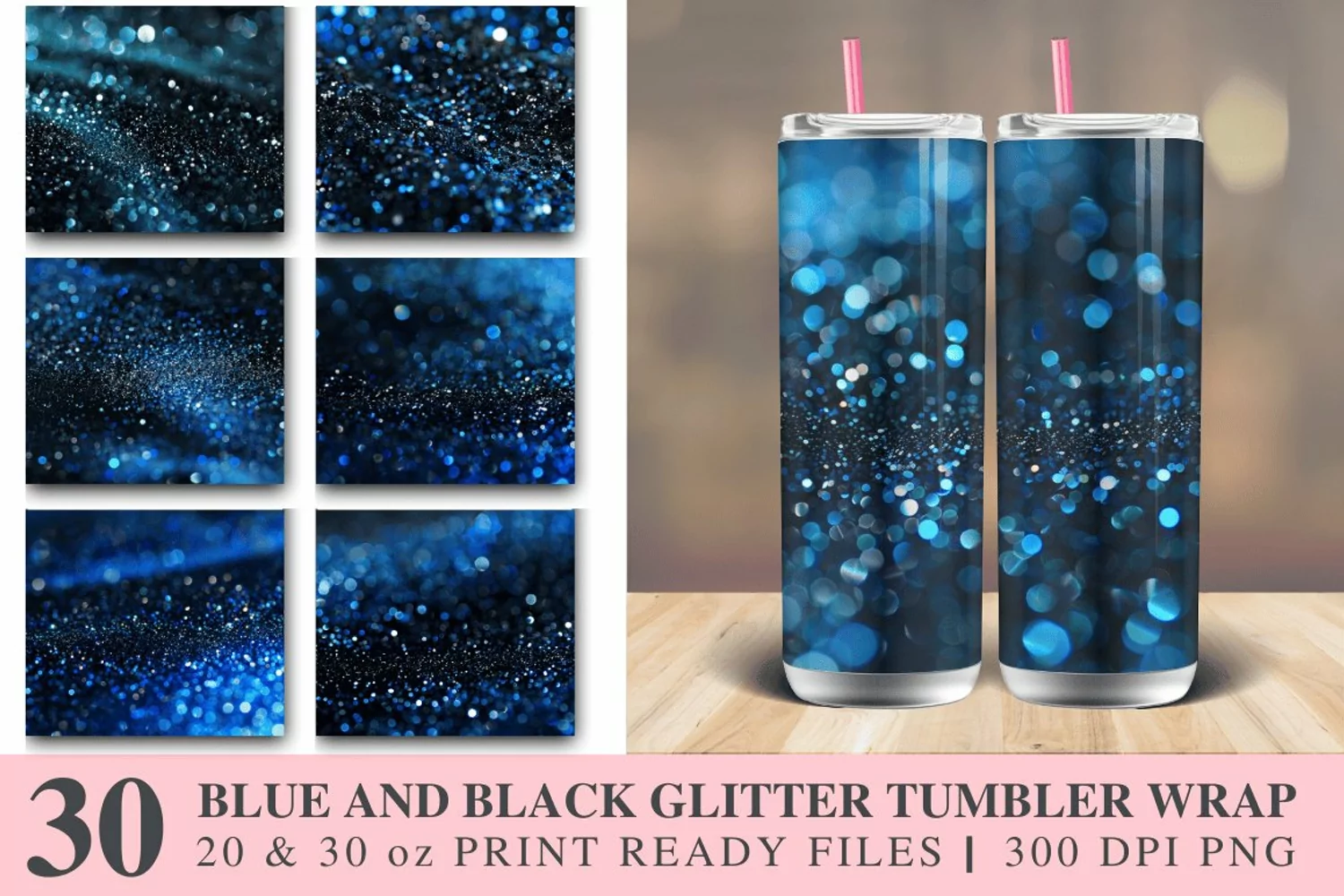 3D Blue and black glitter Tumbler Wrap Bundle example image 1
