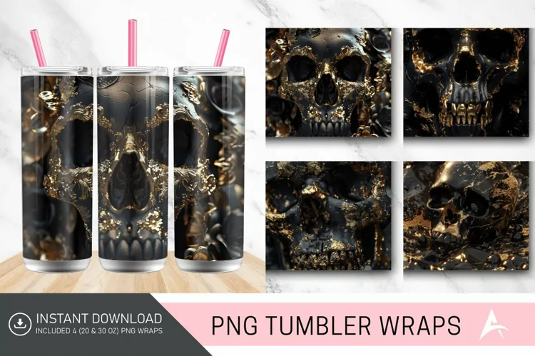 Similar Design Products to 3D Black Gold Skull Tumbler Wrap