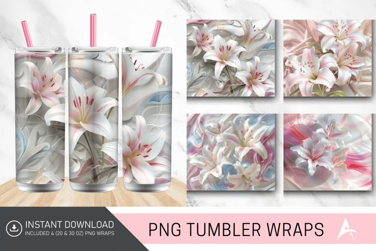 Floral Tumbler Design Personalized Floral Tumbler 3d Flower Tumbler Sticker White Lilies Tumbler Wrap Pink Lilies Tumbler Decal Lily Bouquet Tumbler Wrap Custom Flower Tumbler Decal Pink And White Tumbler Wrap Floral Water Bottle Sticker Lily Pattern Tumbler Wrap