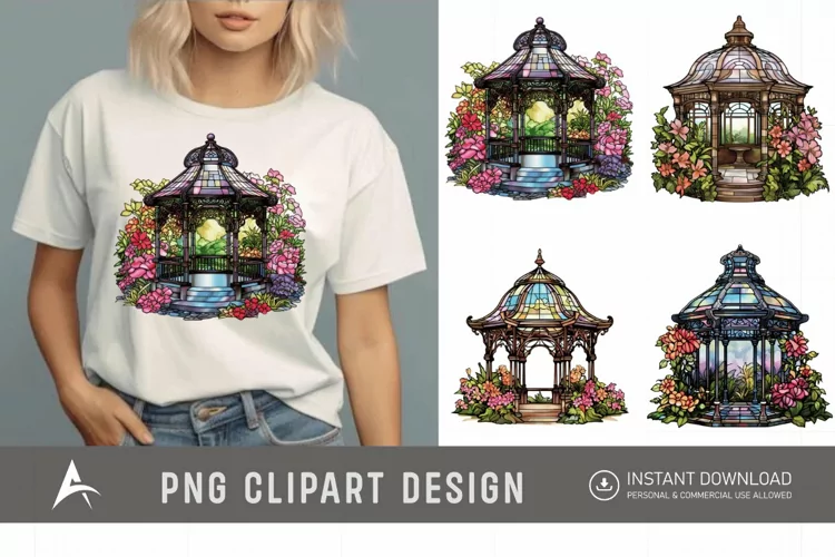 Watercolor Stained Glass Garden Gazebo Clipart example image 1