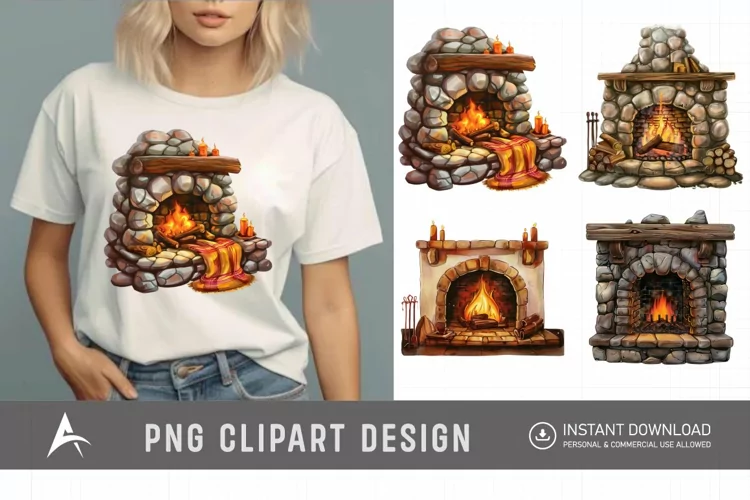 Similar Design Products to Watercolor Cozy Fireplace Clipart