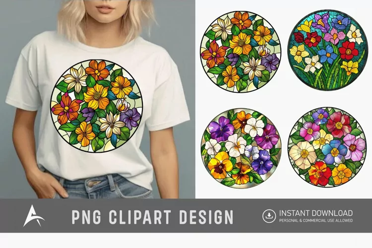 Similar Design Products to Watercolor Stained Glass Spring Flowers Clipart