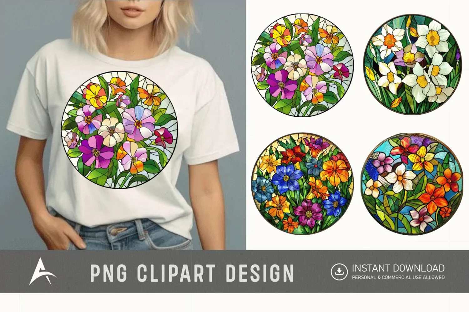 Similar Design Products to Watercolor Stained Glass Spring Flowers Clipart