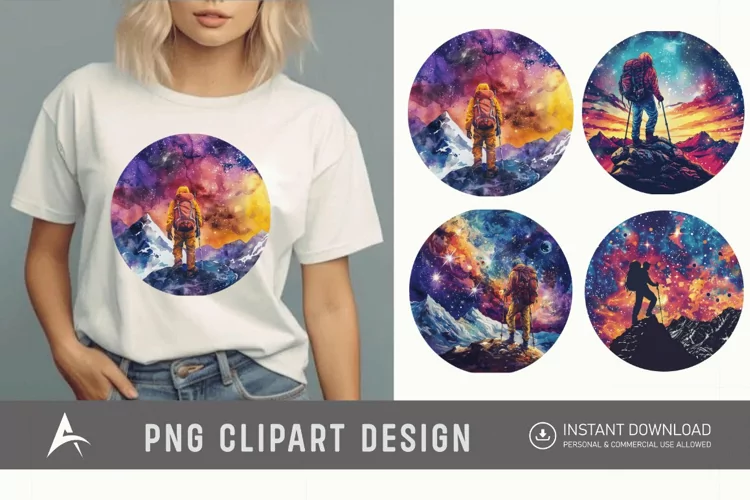 Watercolor Clipart Digital Art Space Clipart Adventure Clipart Mountain Clipart Galaxy Art Outdoor Clipart Hiking Clipart Cosmic Clipart Nature Art