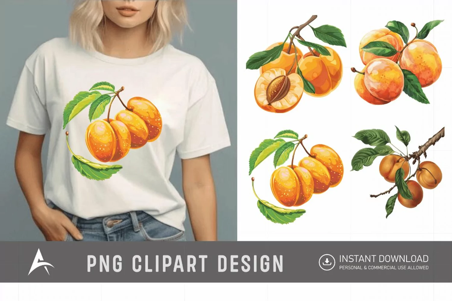 Watercolor Apricot Sublimation Clipart