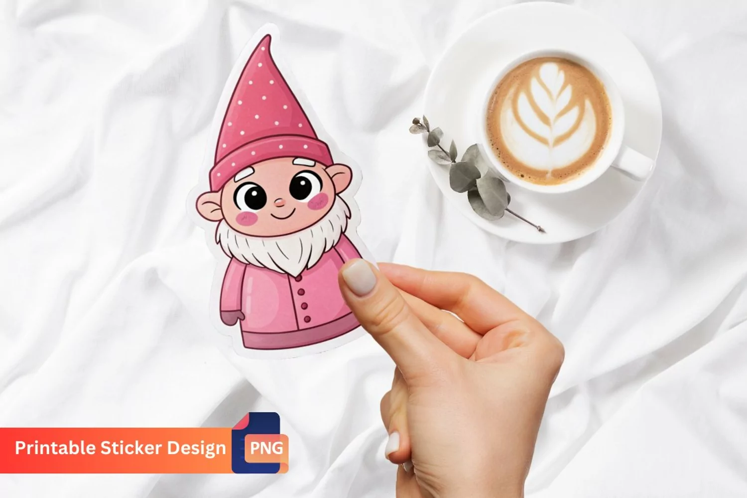 Cute pink Gnome Sticker, Adorable pink Gnome sticker example image 1