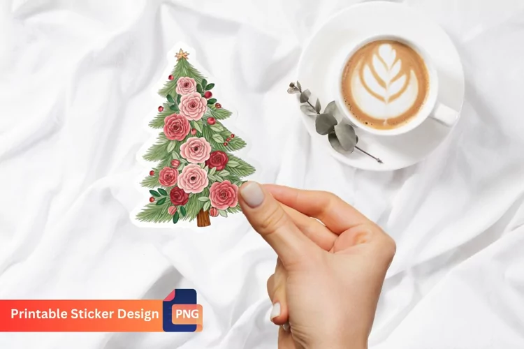 Christmas Tree Rose Flowers Sticker Rose Flower Christmas Tree Sticker Floral Christmas Tree Sticker Holiday Tree Rose Design Sticker Rose And Evergreen Christmas Sticker Festive Rose Tree Sticker Christmas Rose Ornament Sticker Winter Rose Tree Sticker Christmas Floral Sticker Elegant Rose Tree Sticker