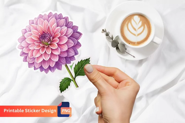 Dahlia Flower Sticker, Flower Sticker, Botanical Sticker