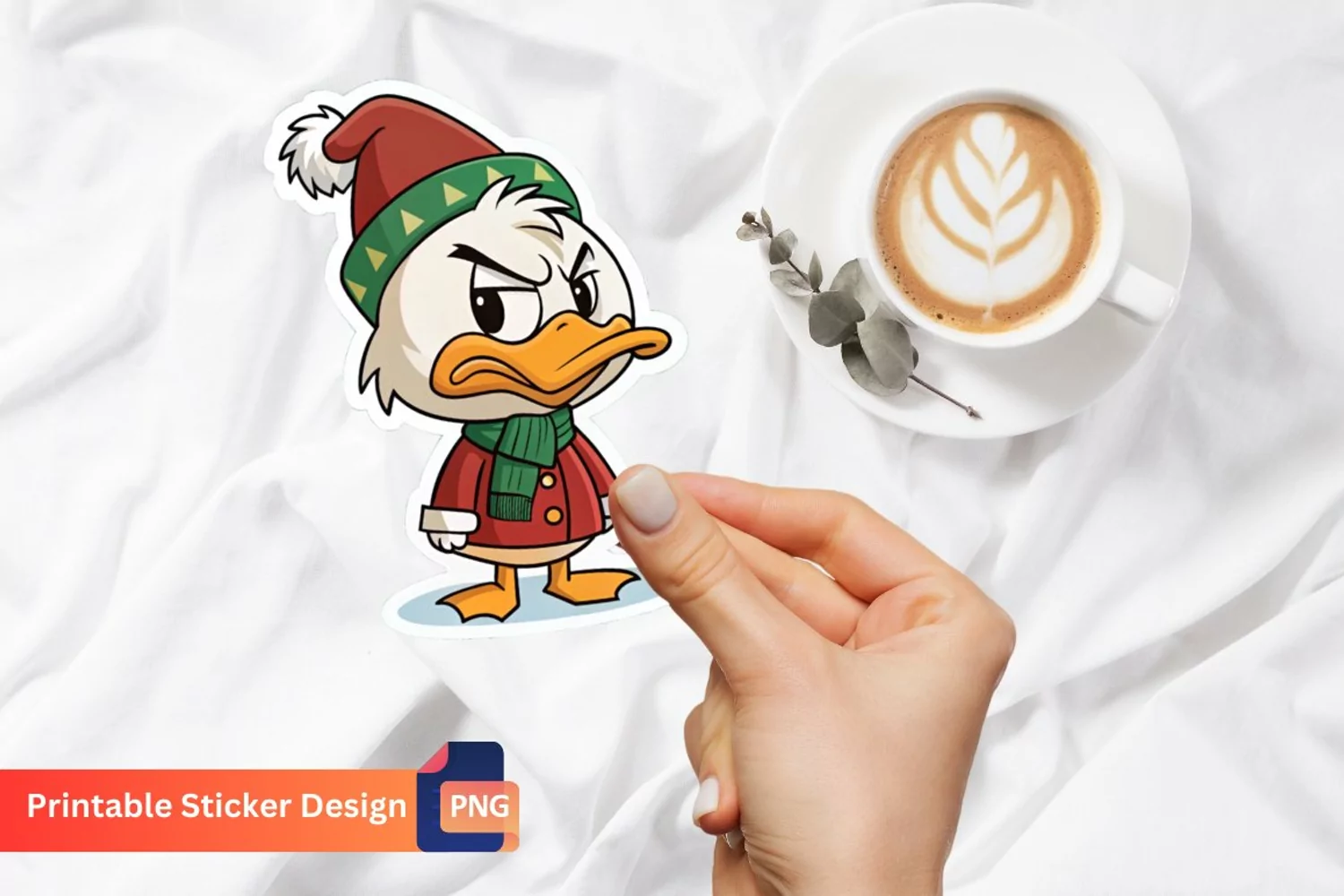 Christmas Funny Grumpy Duck Sticker, Funny Duck Sticker Gift example image 1