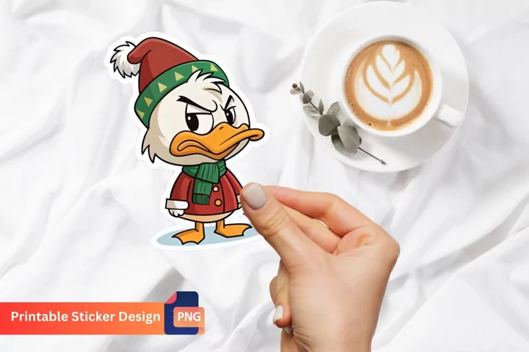 Christmas Funny Grumpy Duck Sticker, Funny Duck Sticker Gift