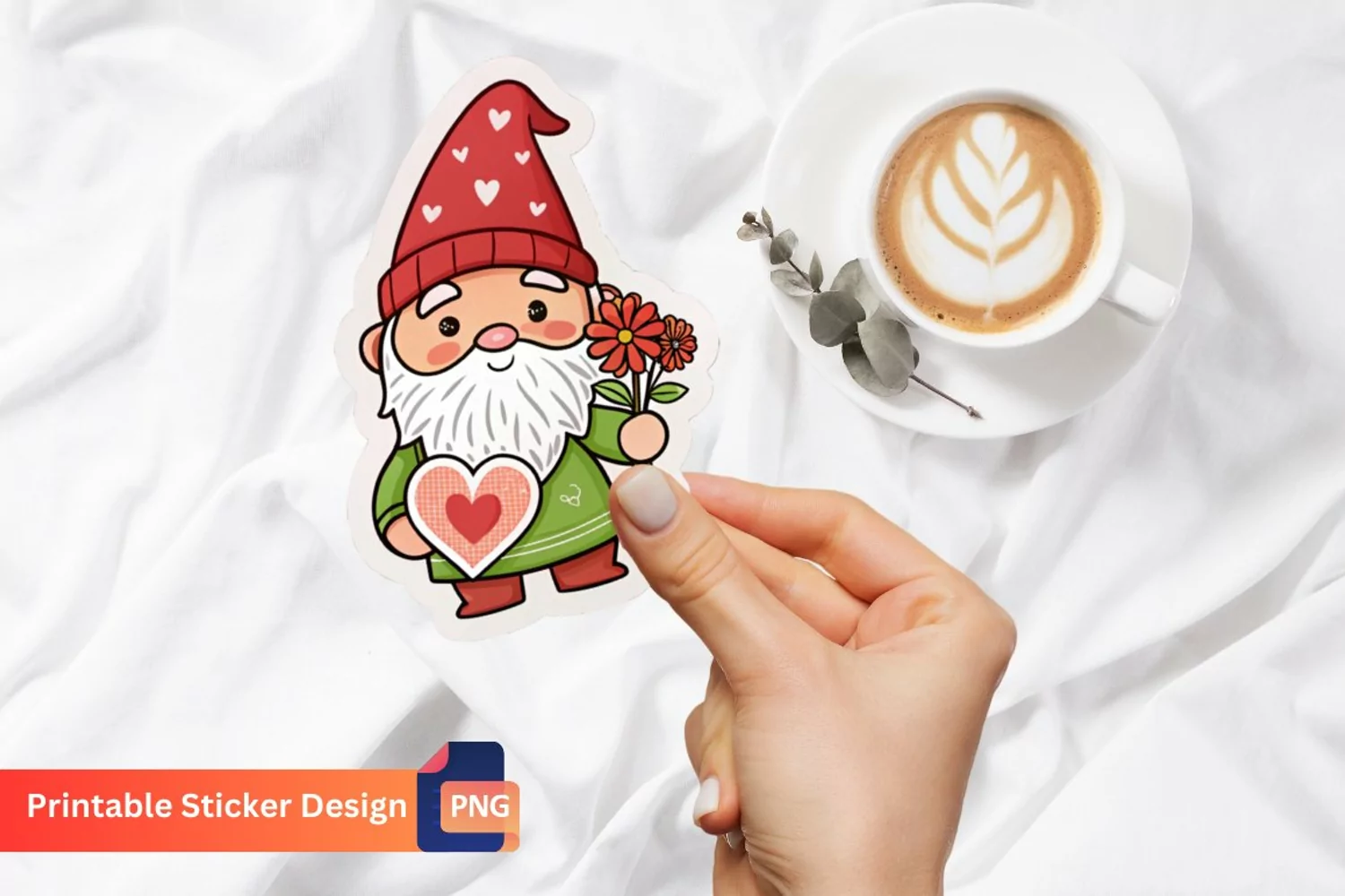 Valentine Gnome Sticker, Cute Valentine Gnome Decal example image 1