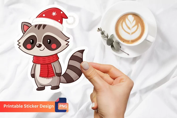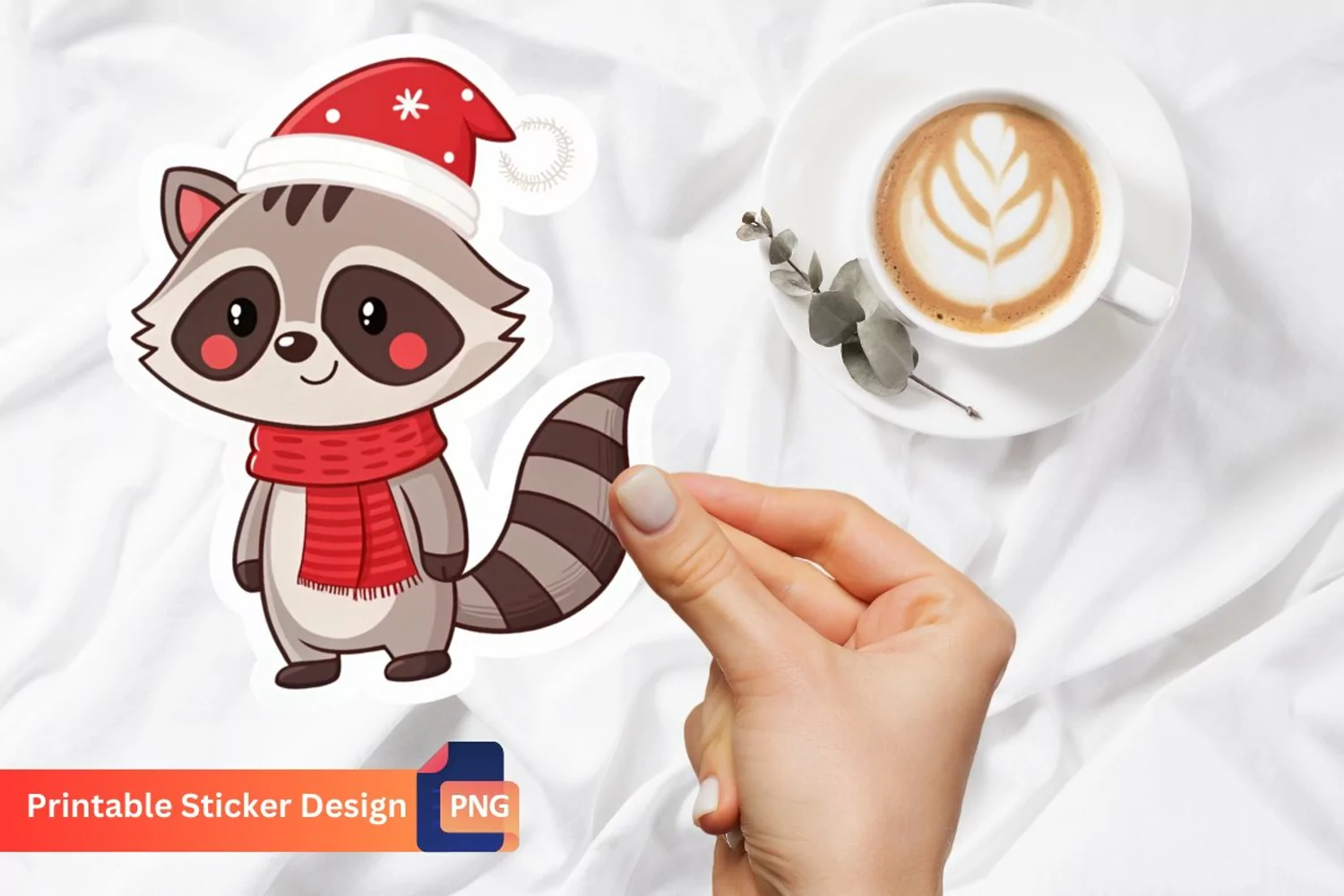 Christmas Raccoon Sticker, Christmas Animal Sticker