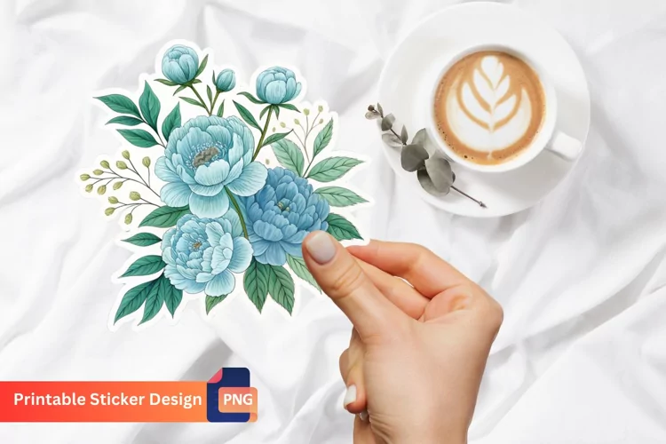 Similar Design Products to Blue Peonies Flower Sticker, Botanical Peonies Sticker
