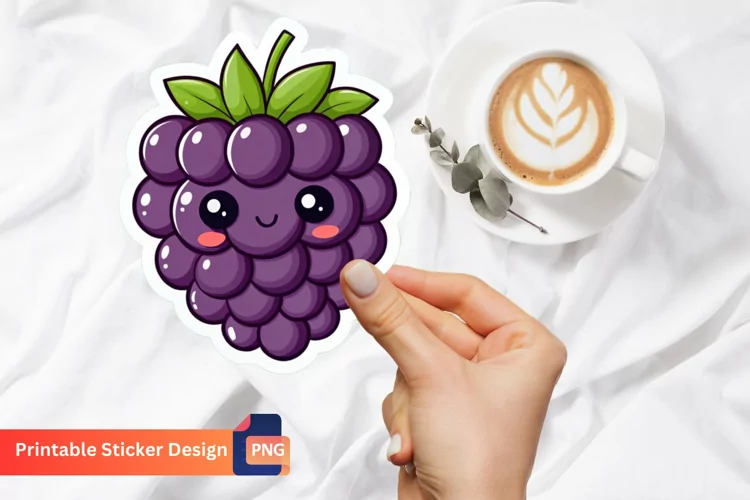 Kawaii Blackberry Sticker, Kawaii Fruit Art, Berry Sticker