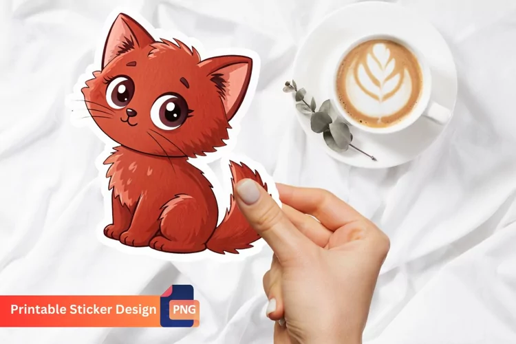 Red Kitten Sticker, Cat Lovers Sticker, Cartoon Kitten Art