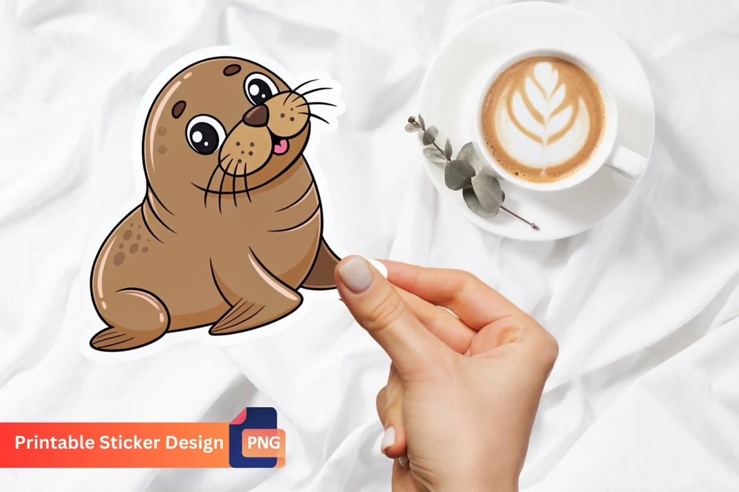 Cute Walrus Sticker, Adorable Animal Sticker, Walrus Decal example image 1
