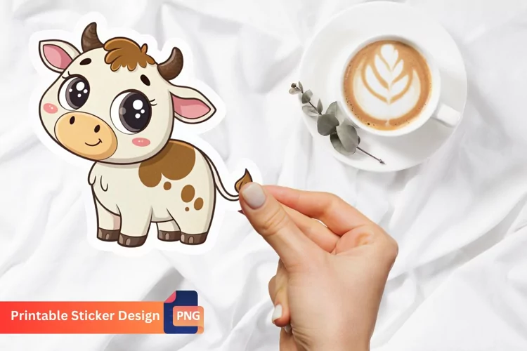Similar Design Products to Cute Cow Sticker, Cute Animal Sticker, Cute Cow Floral Art