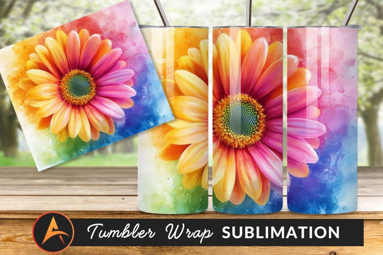 Watercolor Gerbera Flower With Rainbow Background Art example image 1