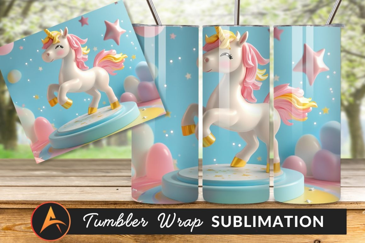 Cute Unicorn On Pastel Stage Whimsical Fantasy Scene Tumbler example image 1