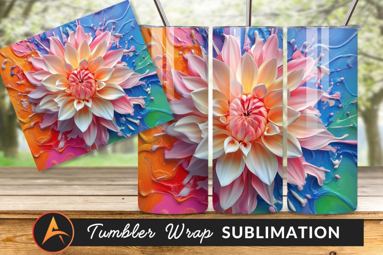 Pink Dahlia Bloom On Vibrant Abstract Paint Swirls Tumbler example image 1