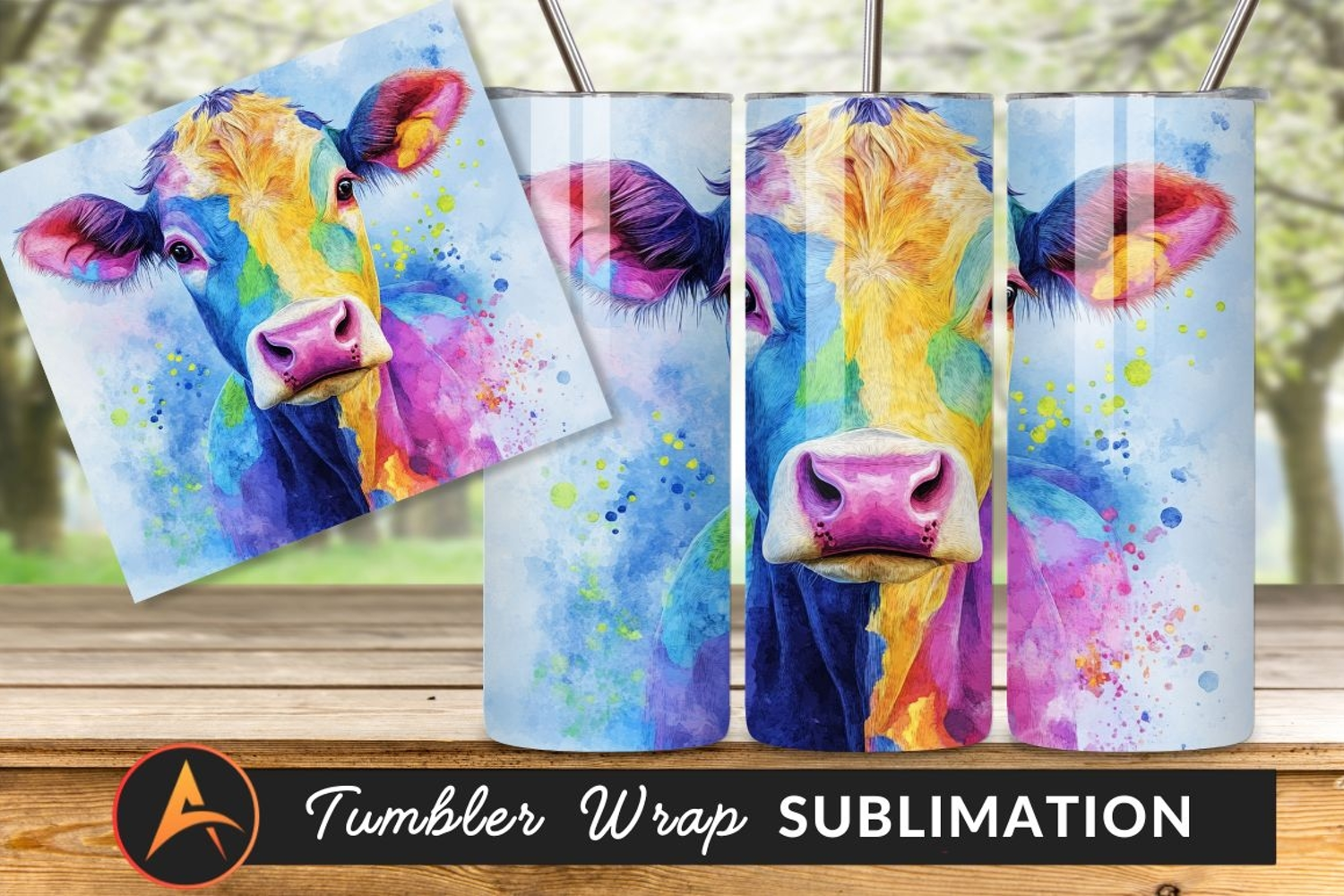 Similar Design Products to Colorful Cow Watercolor Portrait Tumbler Png