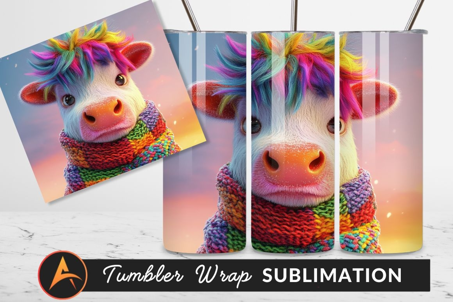 Colorful Cow With Scarf Tumbler Png Image example image 1