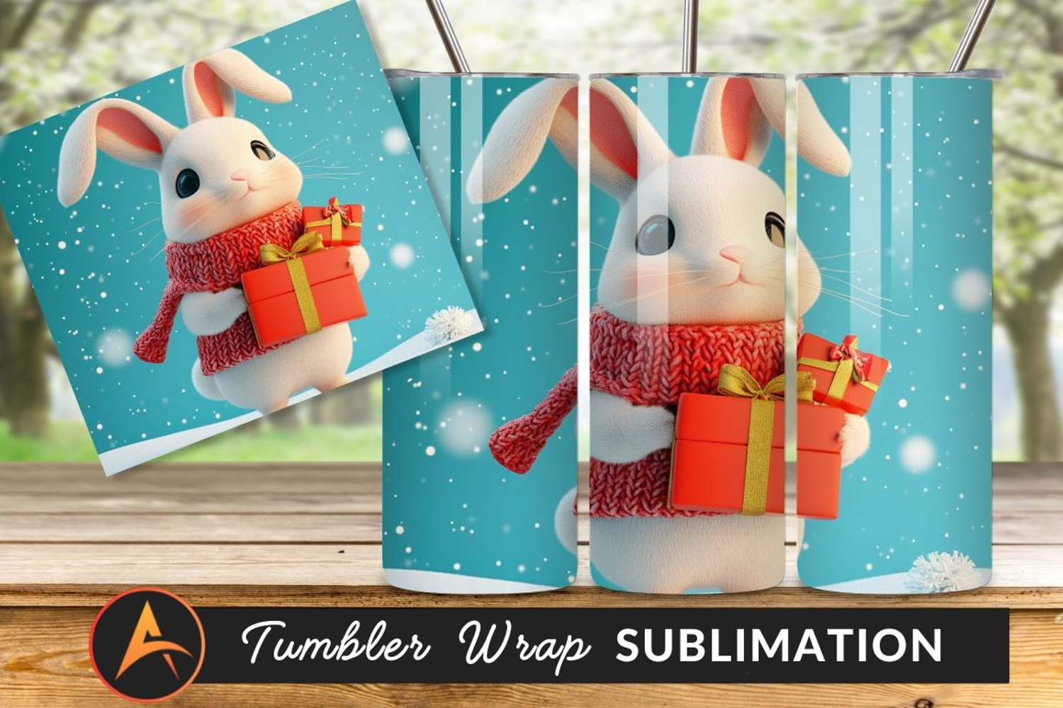 Cute Winter Bunny Holding Christmas Gifts Tumbler example image 1