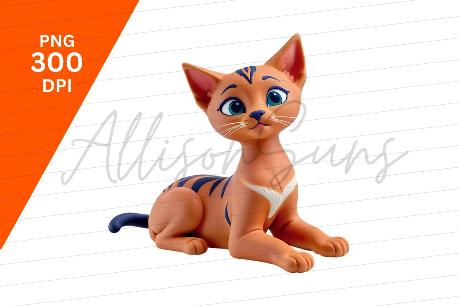 Cartoon Orange Cat With Blue Stripes Clipart Png example image 1