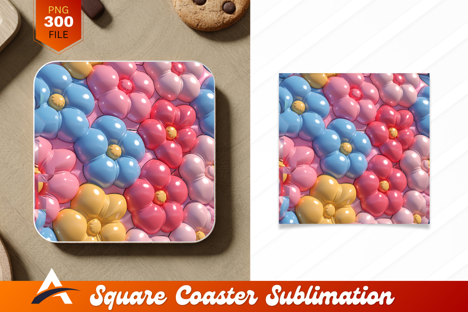Texture Floral Flowers Glossy Abstract Pattern Background Bubbles Pastel Coaster Design