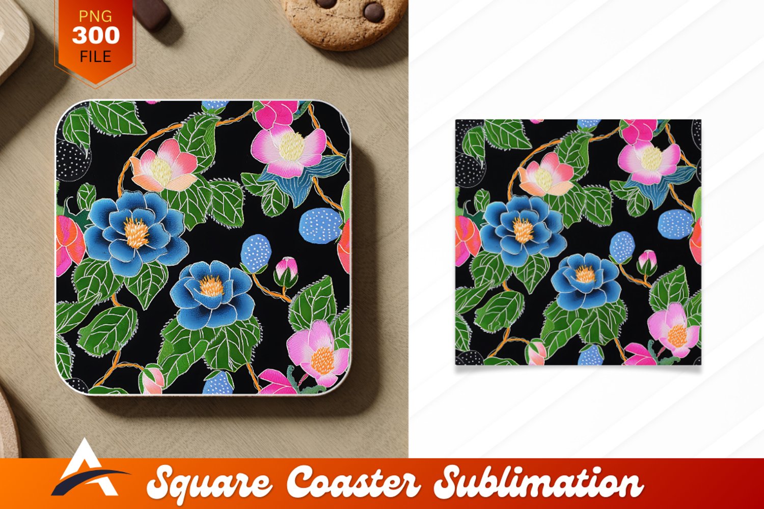 Similar Design Products to Floral Pattern With Blue Pink Flowers Coaster Designs