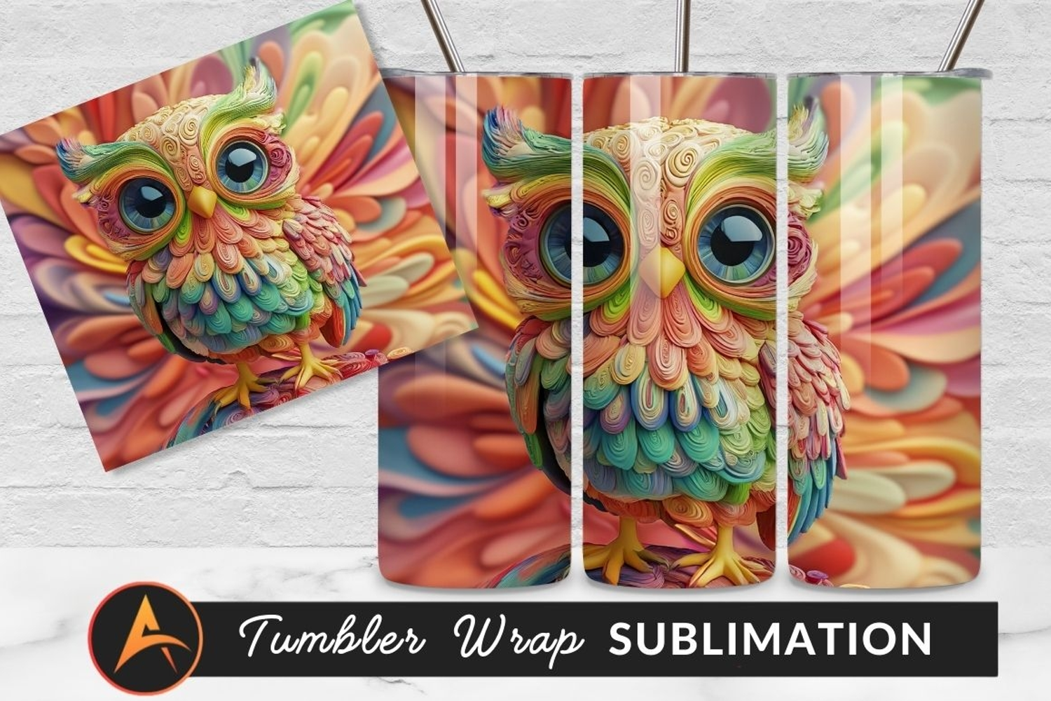 Colorful Artistic Owl Tumbler Png Design example image 1