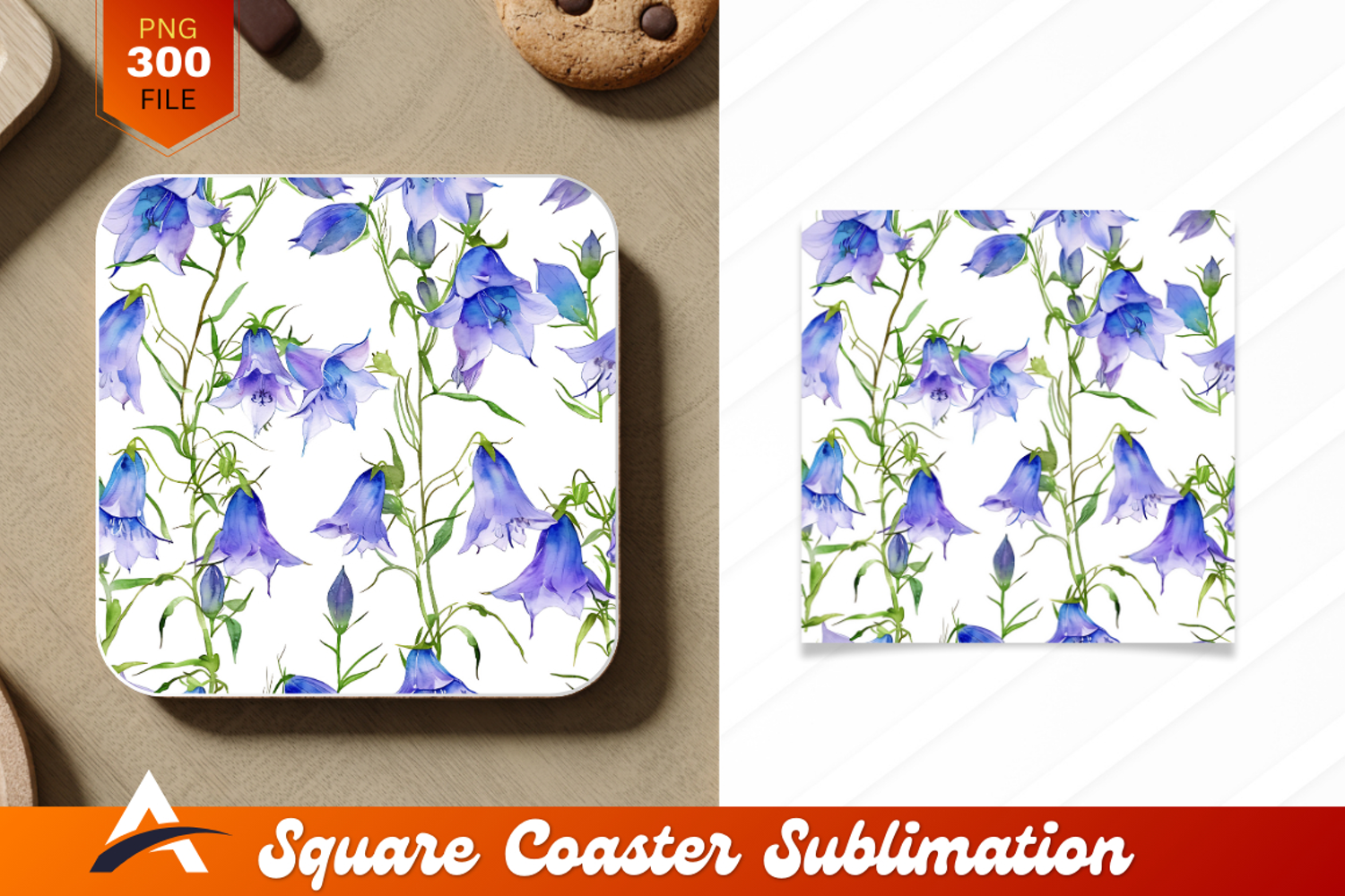Watercolor Bluebell Flower Seamless Pattern Coaster Design example image 1