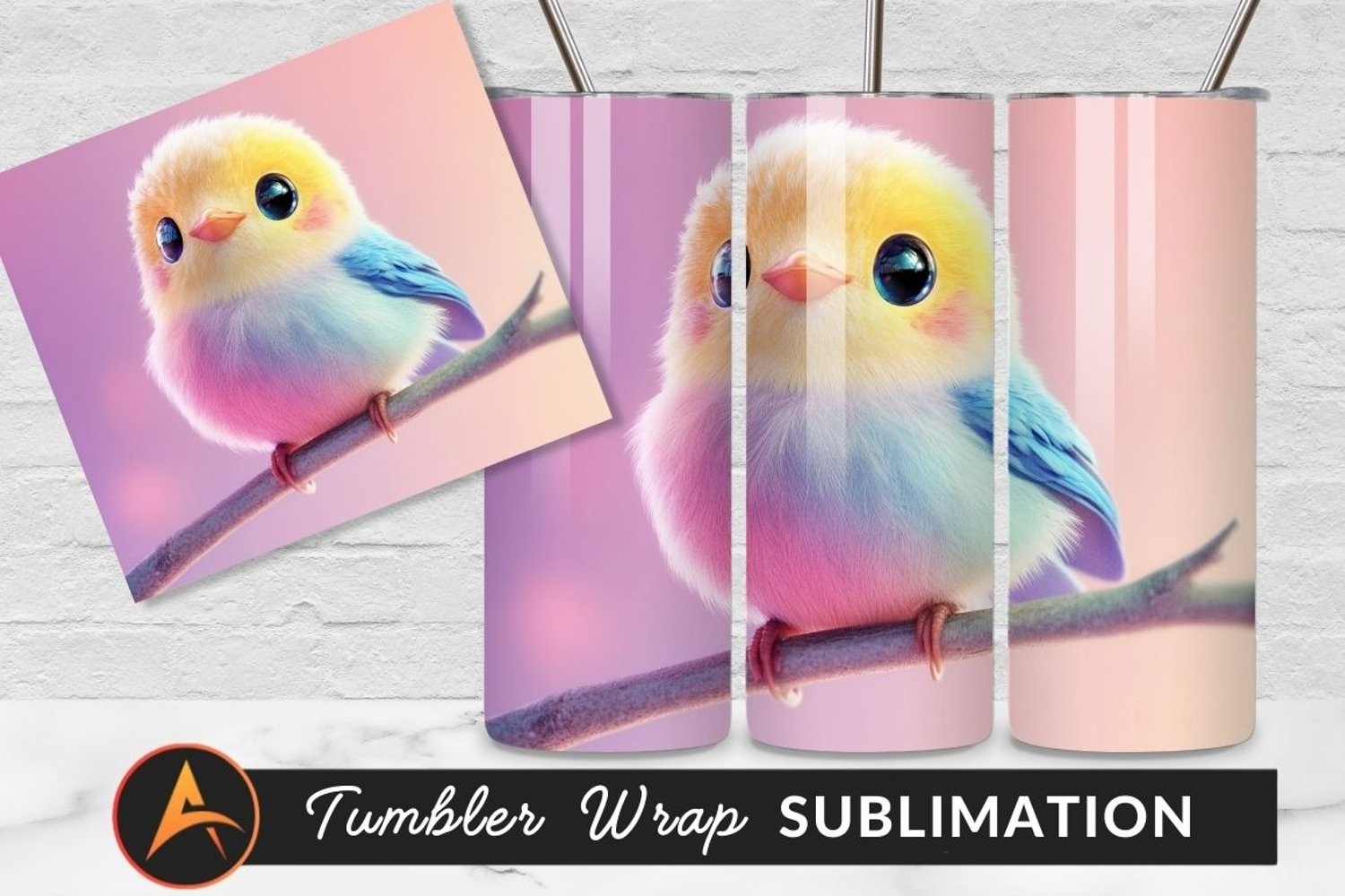 Cute Colorful Bird On Branch Tumbler Png example image 1