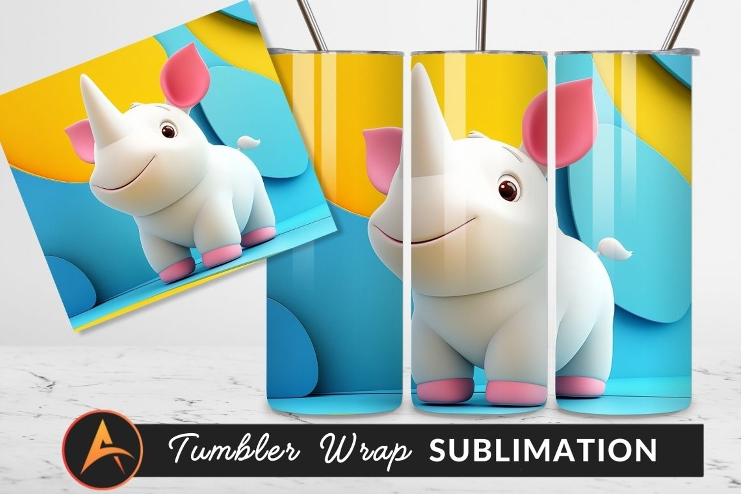 Cute Cartoon Rhino Tumbler Png Character Design example image 1