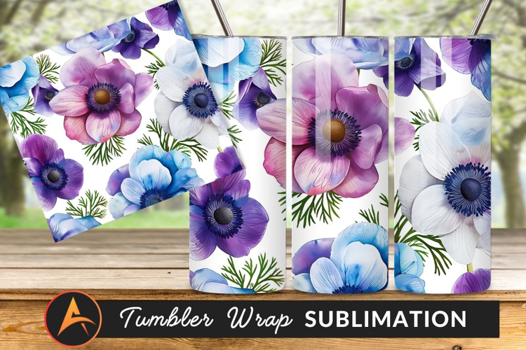 Watercolor Anemone Flower Seamless Pattern Tumbler Png example image 1