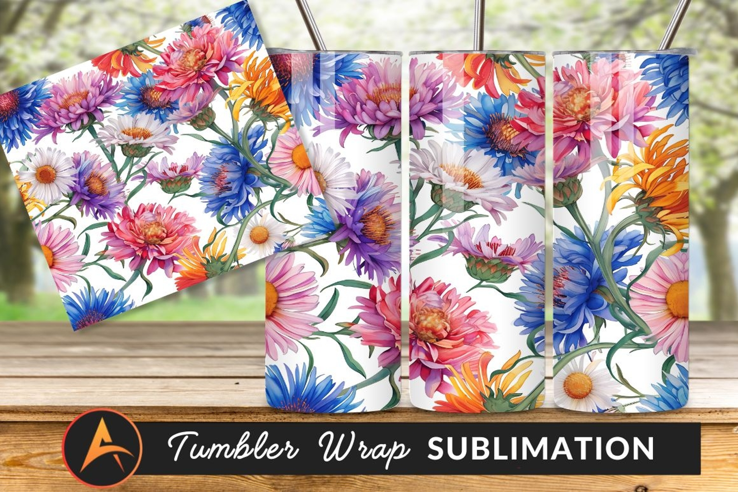 Similar Design Products to Floral Watercolor Seamless Pattern Tumbler Png Design