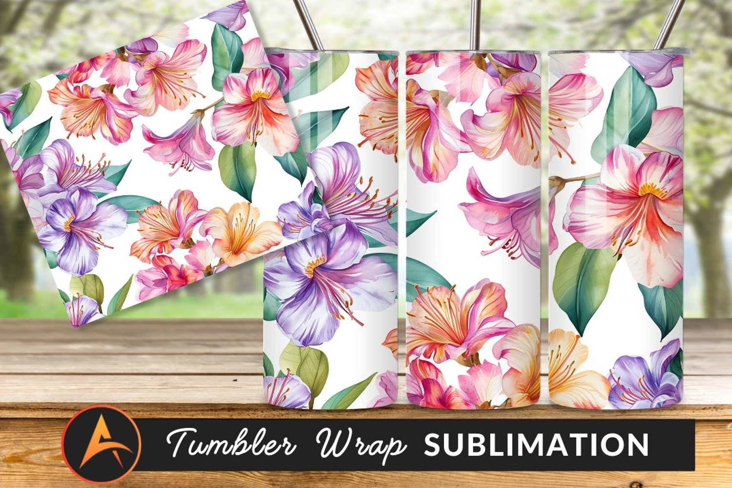 Watercolor Floral Seamless Pattern Tumbler Png example image 1