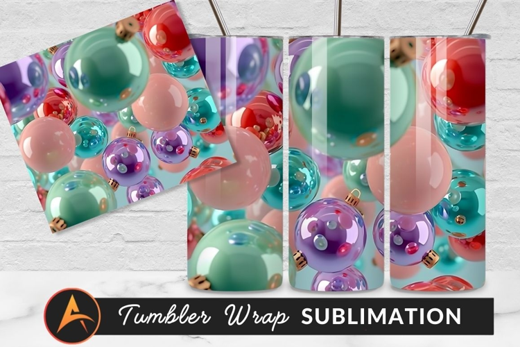Colorful Pastel Christmas Ornaments Tumbler Png example image 1