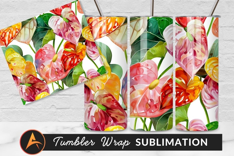 Watercolor Anthurium Flowers Seamless Pattern Tumbler Png example image 1