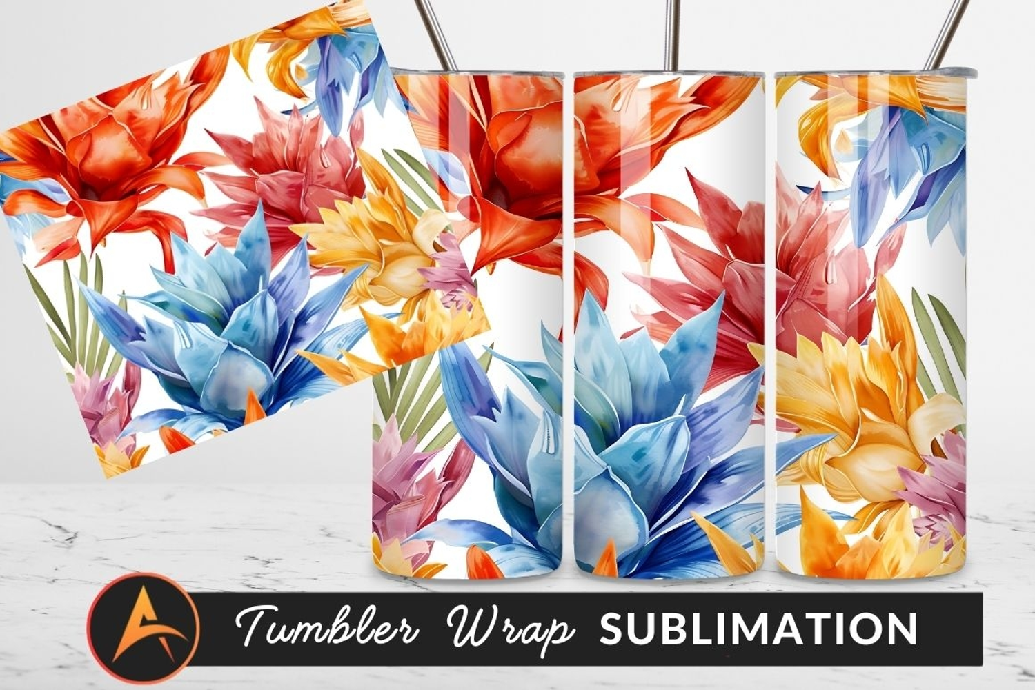 Colorful Tropical Flower Watercolor Seamless Pattern Design example image 1