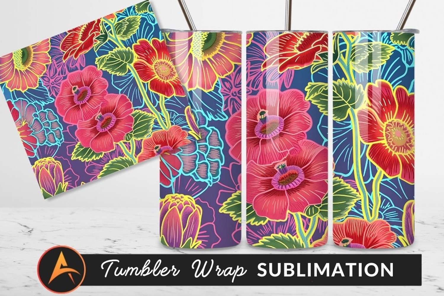 Similar Design Products to Bright Colorful Floral Pattern Design Tumbler Png