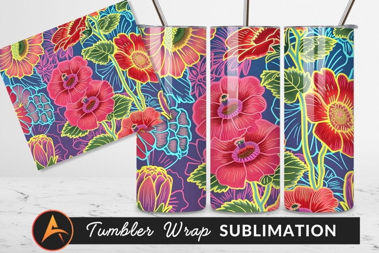 Bright Colorful Floral Pattern Design Tumbler Png example image 1